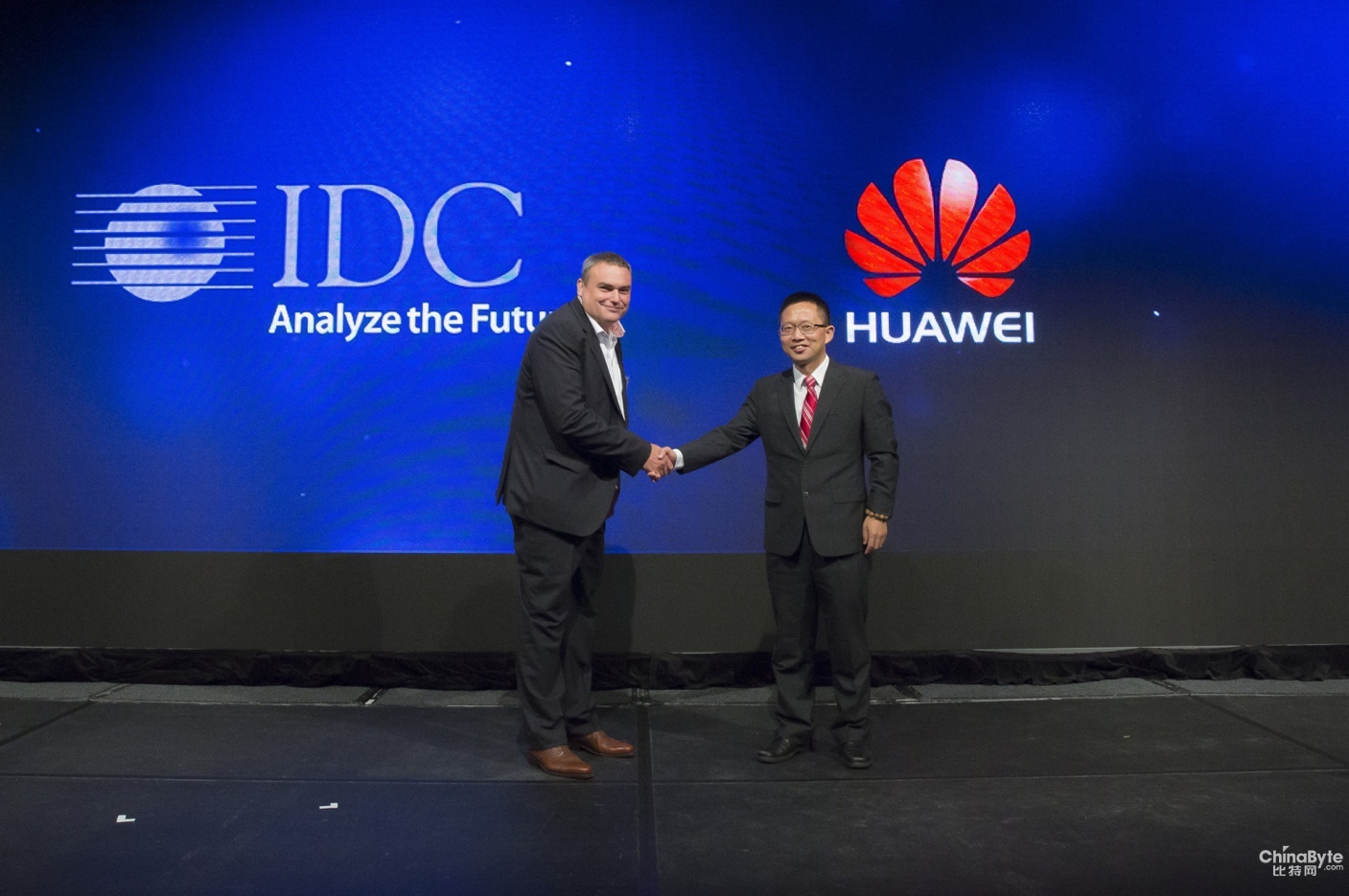 圖片說明:IDC亞太區(qū)總裁Christopher Holmes先生與華為企業(yè)BG Marketing與解決方案銷售部總裁何達炳先生共同宣布華為與IDC聯(lián)合白皮書“創(chuàng)新ICT助力全聯(lián)接電網(wǎng)“正式發(fā)布